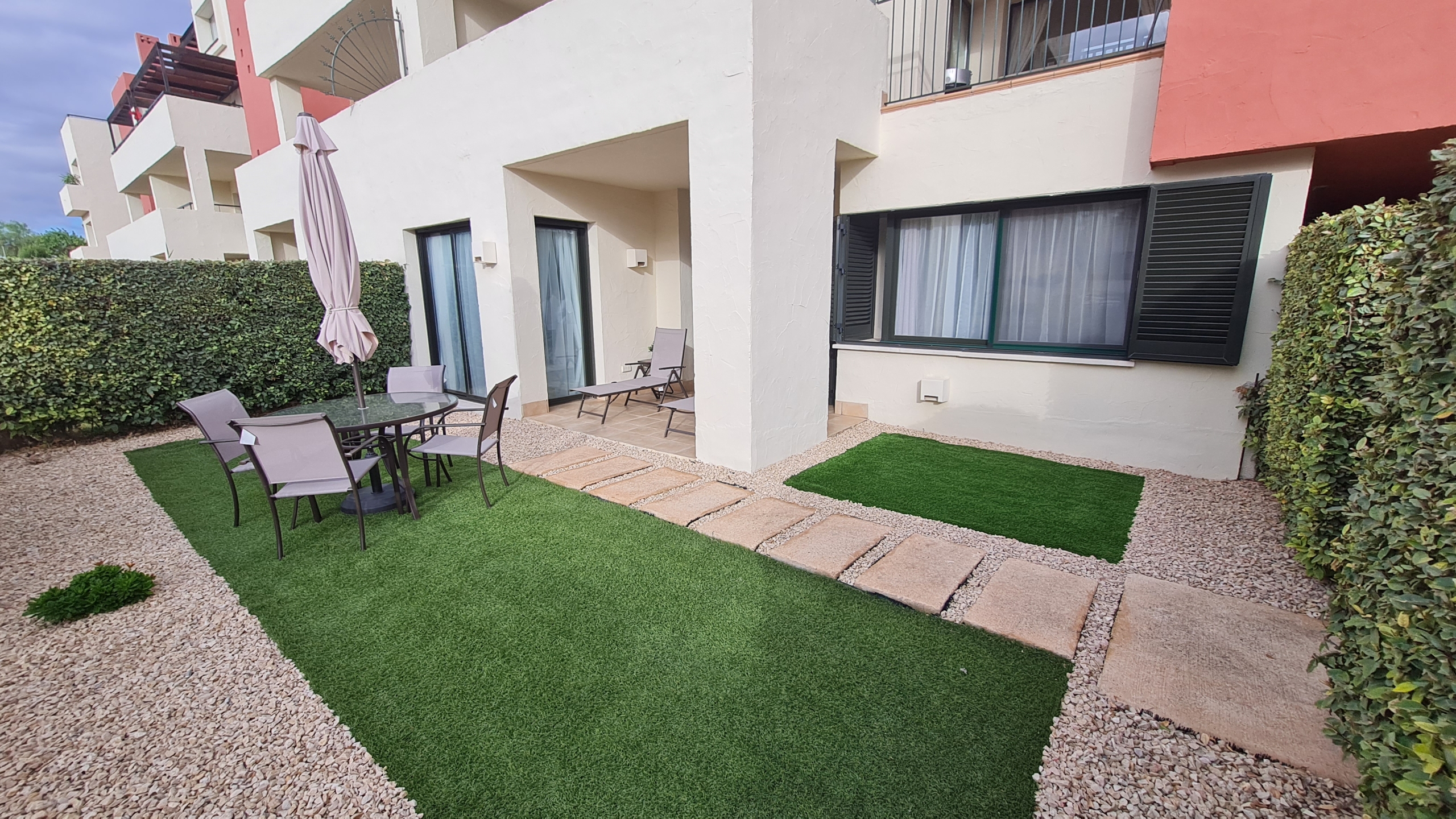 Exclusivo apartamento en planta baja situado en el prestigioso complejo Corvera Golf. Esta elegante vivienda de dos dormitorios y dos baños combina diseño moderno con un confort excepcional. Destaca por su amplio jardín privado con espectaculares vistas, perfecto para disfrutar de la tranquilidad y el estilo de vida mediterráneo.